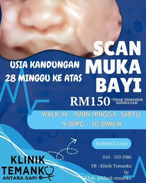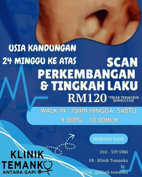 搜索关键词 pregnancy scan, ultrasound baby, fetal development, female doctor, selangor clinic, detailed scan, baby health, maternity services, klinik temanku, scan baby优势 Comprehensive Scan Options (2D to 6D),Detailed Development Scan,Fetal Behavior 4D Scan,Large Screen with Clear Image,Family Inclusion during Scan,Walk-in or Appointment,Female Doctor Only
