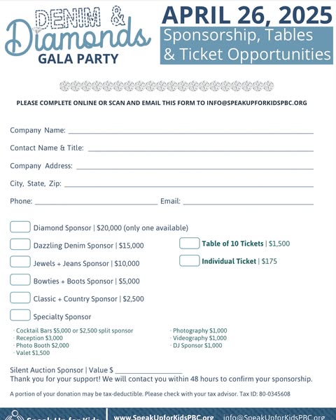 #DenimAndDiamonds #SpeakUpForKids #PalmBeachCounty #FundraisingForKids #CommunityMatters #Florida #Donate #Support #FosterChildren #FosterKids #GlamForGood #ShineBrightForFosterKids
