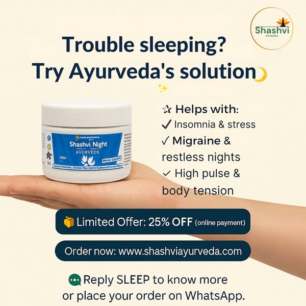 🌙 Sleepless nights? Stress overload? Introducing Shashvi Night Ointment – Ayurveda’s trusted sleep solution. ✅ Promotes deep sleep ✅ non-habit forming ✅ Reduces stress 💥 Now at 25% OFF on online payments!