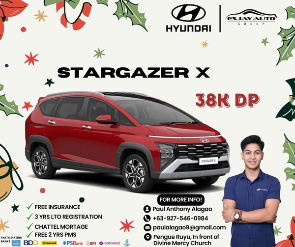 Limited time offer: Get a FREE 2-year or 30,000km PMS package on all Stargazer variants & FREE 20K SM GIFT CARD until Dec. 2024