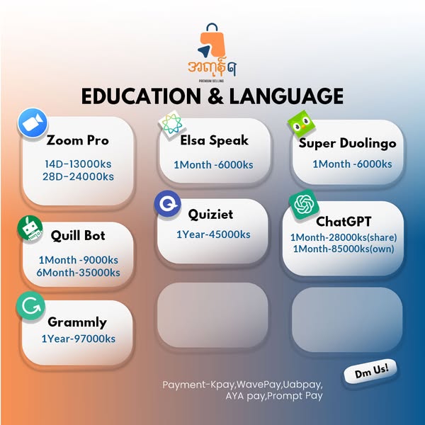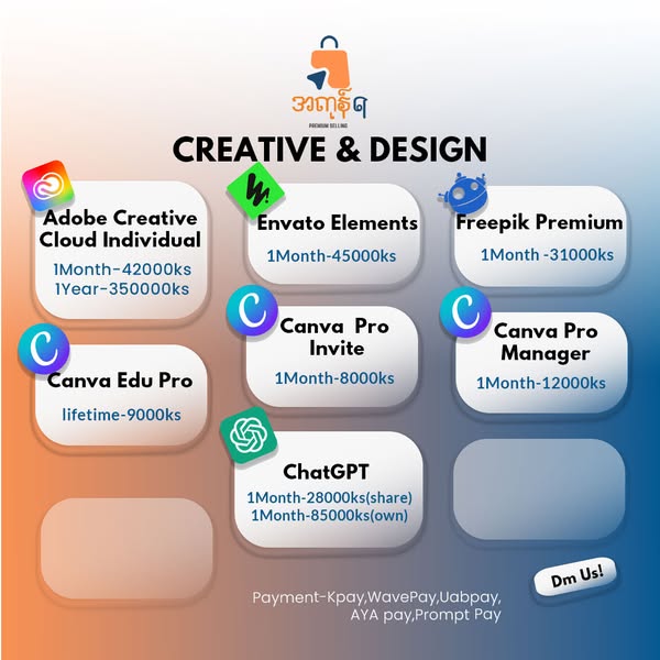 搜索关键词 VPN service, Myanmar streaming, cheap Netflix, Adobe subscription, online learning, language learning, discord nitro, microsoft 365, productivity tools, entertainment subscriptions优势 Wide variety of digital subscriptions available.,Affordable prices.,Convenient one-stop shop.,Requests for additional services accepted.