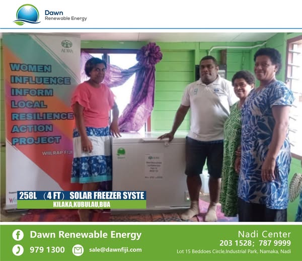 🌞🌞🌞Dawn Renewable Energy has recently successfully installed a 258-liter solar freezer system in remote areas such as Kilaka,Kubulau,Bua in northern Fiji, bringing a sustainable refrigeration solution to the local community.