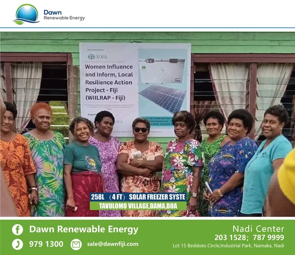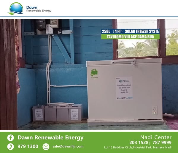 🌞🌞🌞Dawn Renewable Energy has recently successfully installed a 258-liter solar freezer system in remote areas such as Tavulomo village,Dama,Bua in northern Fiji, bringing a sustainable refrigeration solution to the local community.