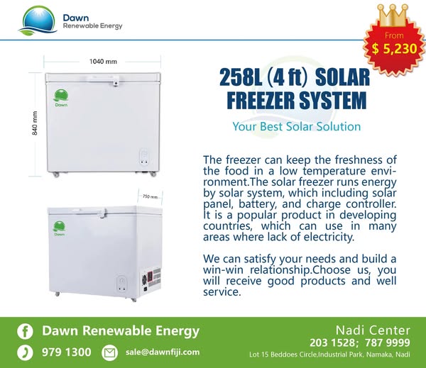 搜索关键词 solar freezer system, renewable energy, Fiji, remote refrigeration, sustainable cooling, dawn solar fiji, solar power system, energy conservation, off grid freezer, solar powered freezer优势 Fully solar powered,Large capacity,Efficient refrigeration,Low maintenance,Suitable for remote areas