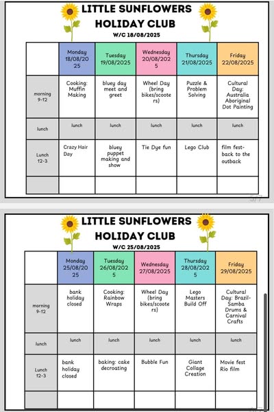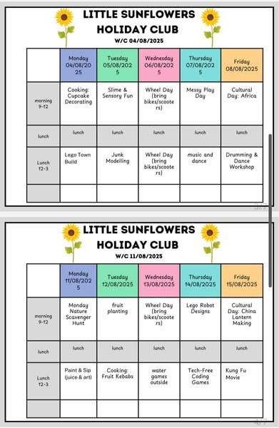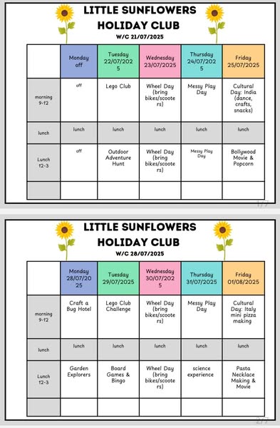we’ve got jam-packed days of fun planned every week. To book your child’s place, pop into The Leek Play Hub to pick up an application form, email us at manager.sunflowernursery@gmail.com, or simply send us a private message. Spaces are limited, so don’t miss out! 🌻