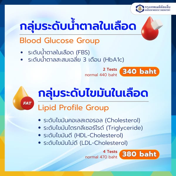 搜索关键词 Bangkok medical lab, health checkup, blood test, medical test, affordable health checkup, annual checkup, medical consultation, lab test near me, disease prevention, general health优势 Affordable price (starts at 720 THB),Comprehensive health checkup options,Choice of specific test groups,Convenient locations (multiple branches),No appointment needed (walk-in service),Free consultation with medical technologist