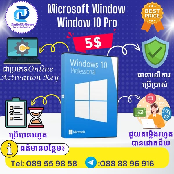 ☑️ Windows 10 Pro = 5$ (ប្រើបានរហូត)