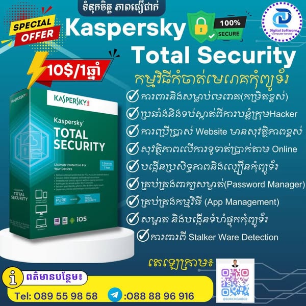 ☑️ Kaspersky Total Security = 10$ (មួយឆ្នាំ)