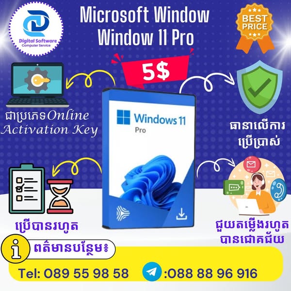 ☑️ Windows 11 Pro = 5$ (ប្រើបានរហូត)
