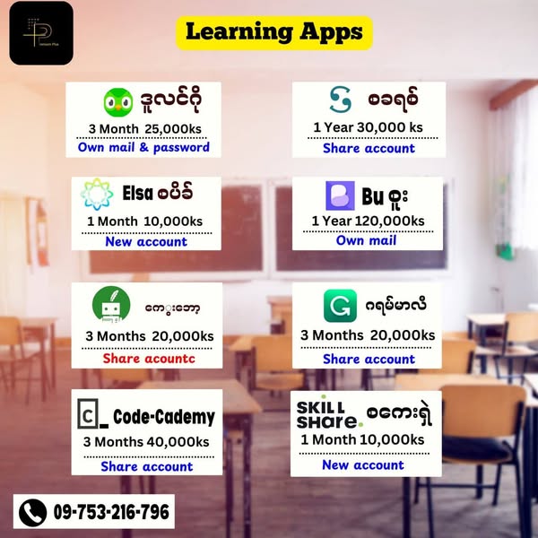 (3)အိမ်မှာနေရင်း စာလေ့လာချင်တဲ့ ကျောင်းသူ ကျောင်းသားများအတွက် 📚 Education services အမျိုးစုံ 💁🏻