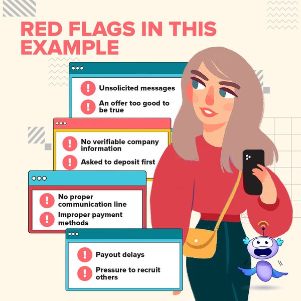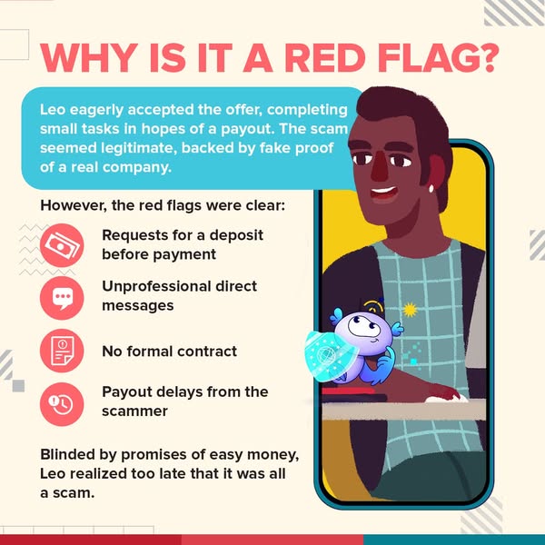 搜索关键词 task scam, job scam, online fraud, easy money scam, scam awareness, protect yourself, avoid scams, online safety, engineered to do good, financial security优势 Raises awareness of task scams,Provides tips to avoid scams,Promotes critical thinking about job offers
