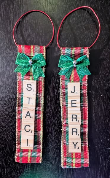 Need a one-of-a-kind gift? Personalized Christmas ornaments for family, friends, and coworkers are available. I would love to create some customized ornaments for you. Please allow 2-3 days for completion, as each ornament is carefully handmade. To place an order, please message me with your choice of either the white w/red or plaid ribbon & the names for each ornament. Prepayment through PayPal is required, and pickup in Springfield, IL is preferred once the ornaments are ready.