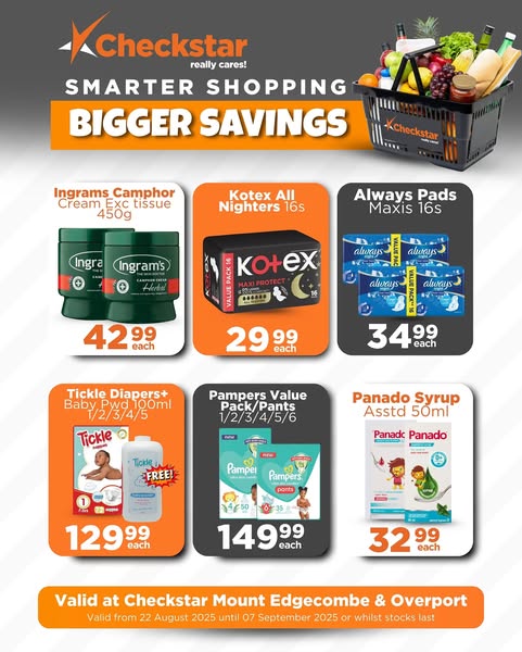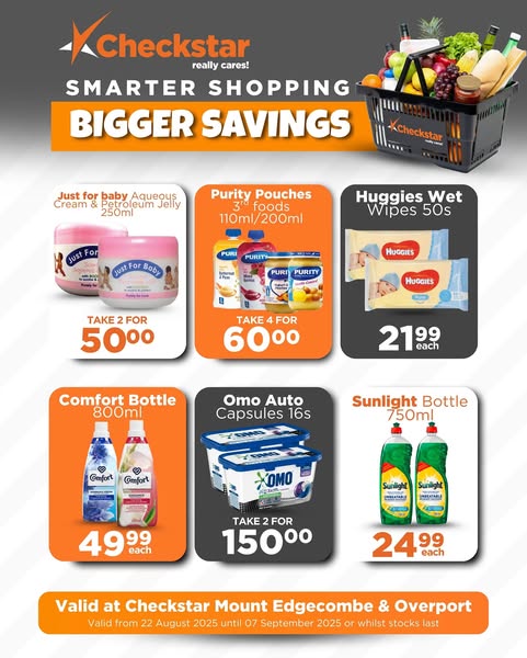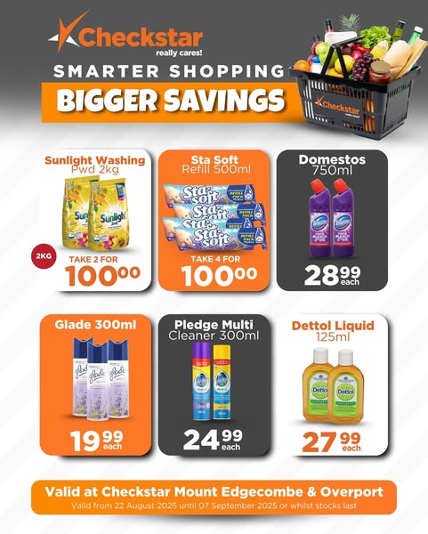#Checkstar #BiggerSavings #ShopSmarter #durban #overport #myedgecombe #CheckstarCares #ValueShopping #SaveMore #SmartShopping #EveryRandCounts #CheckstarDeals”