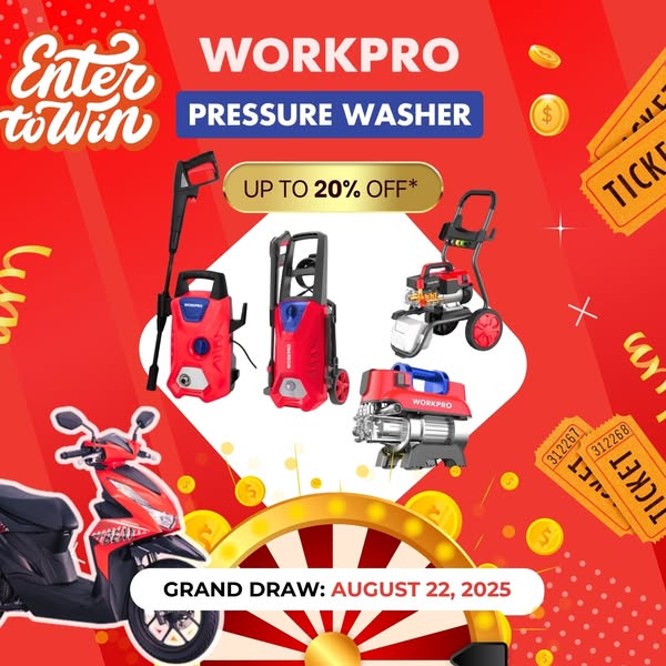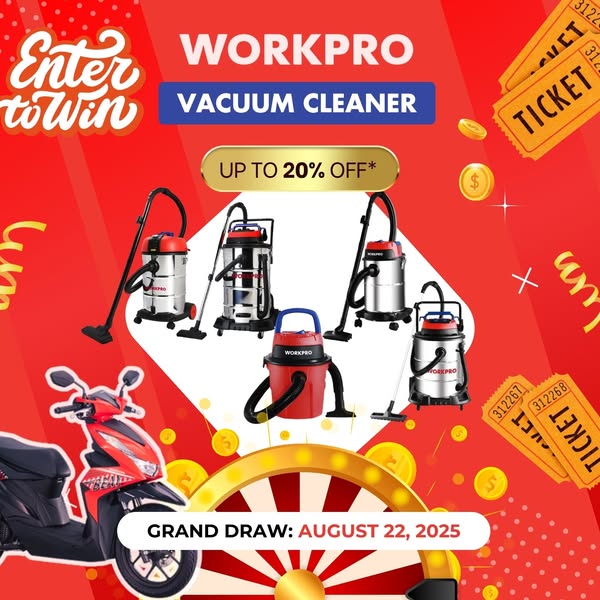搜索关键词 WORKPRO power tools, Honda Beat giveaway, Raffle promo Philippines, DIY projects tools, Vacuum cleaner deals, Pressure washer sale, Hand tools Philippines, Power tools sale, CDO events raffle, WorkPro Vroom Win优势 Chance to win a Honda Beat Motorcycle,Opportunity to win Vacuum Cleaners and Pressure Washers,Easy to enter the raffle