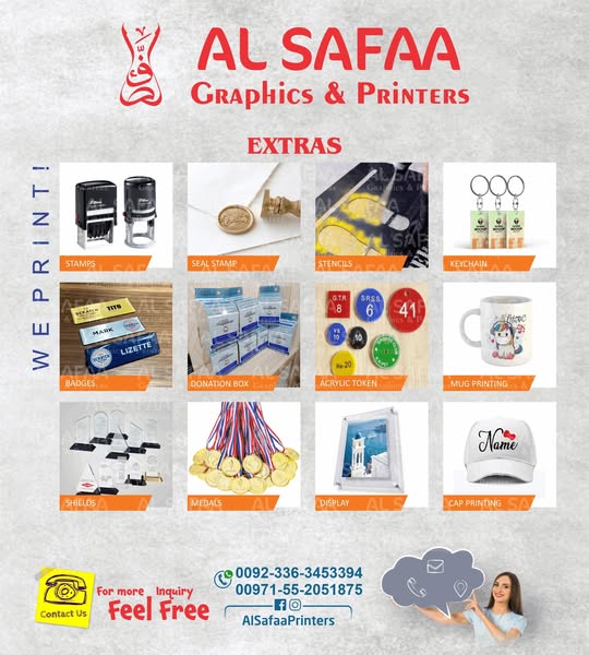 搜索关键词 printing services, shield medals, acrylic display, panaflex printing, media walls, vinyl branding, oneway vision, standees printing, AL SAFAA PRINTERS, printing and branding优势 Wide range of printing services,International contact numbers,Order via WhatsApp