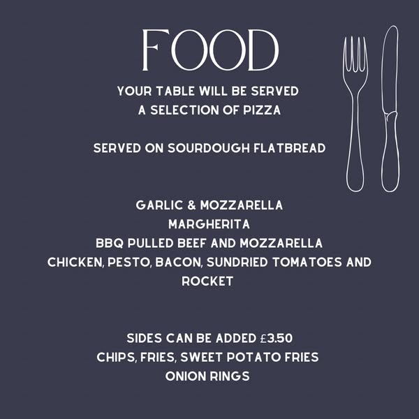 Vegan options available let us know of any dietary requirements or intolerances we are happy to help!