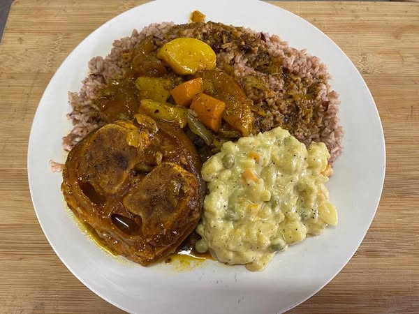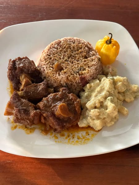 🔹STEWED OXTAIL SERVED WITH RICE & BEANS AND CHOICE OF POTATO SALAD OR COLESLAW:$15.00