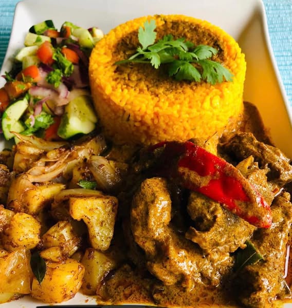 🔹CURRY BEEF SERVED WITH YELLOW CURRY RICE, DEVILED POTATOES & VEG SALAD:$18.00