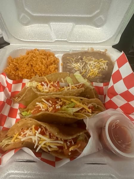 3Hard Shell Tacos with Beans and Spanish Rice $14.00