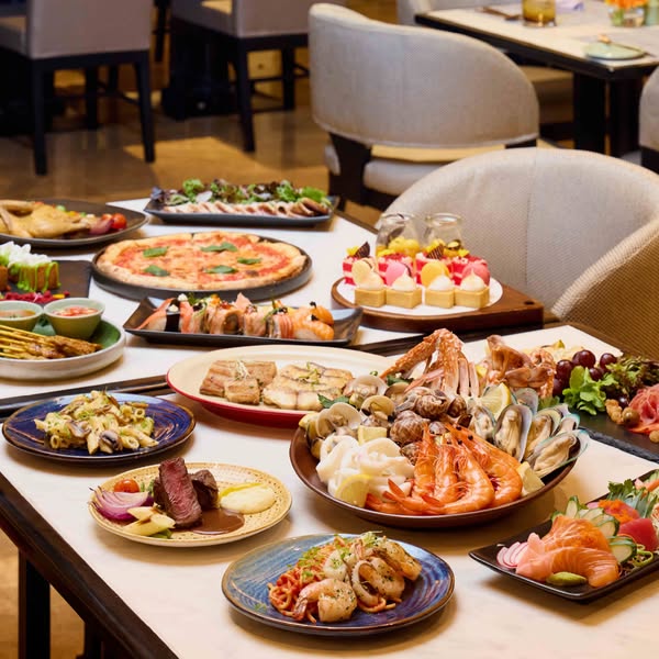🍣 Indulge in unlimited Japanese specialties, from sashimi and sushi to chilled walnut soba, Alaskan crab chawanmushi, grilled unagi, and grilled hamachi, along with an array of seafood on ice, fresh oysters, roast beef, cold cuts, cheeses, authentic Thai and Northern Thai dishes, Peking duck, dim sum, and a curated selection of Chinese dishes. Conclude your feast with a delightful selection of desserts to perfectly complete your dining experience.