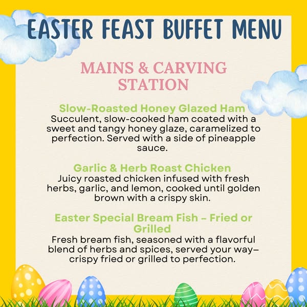 搜索关键词 Easter buffet, Harry's Grill, Easter 2025, Egg hunt, Easter lunch, Family restaurant, Live music, Zambia restaurant, Weekend buffet, Easter celebration优势 Festive buffet,Live music,Kids activities