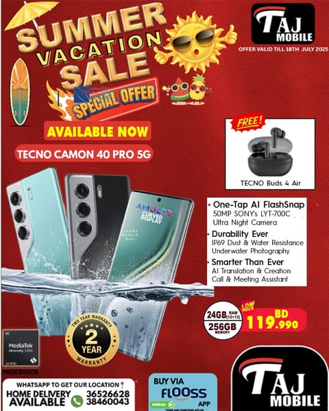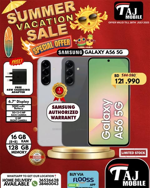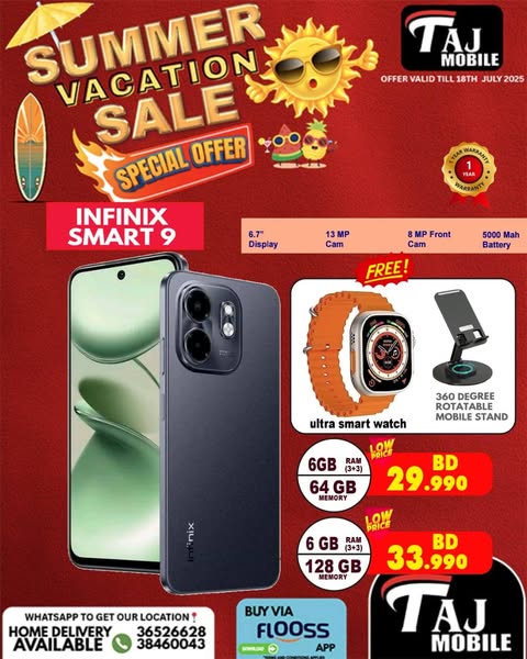 搜索关键词 Taj Mobile Bahrain, Mobile Phone Deals, Summer Vacation Sale, Free Gifts, Price Drop, Exclusive Bundles, Home Delivery, Bahrain Tech, Limited Stock, Mobile Offers优势 Free gifts,Shocking price drop,Exclusive bundle deals,Home delivery available