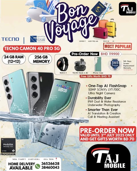 搜索关键词 Bahrain mobile deals, Mobile phone sale, Taj mobiles offers, Vacation mobile deals, Shocking price drops, Mobile bundle deals, Bahrain shopping, Tech sale, Home delivery优势 Free gifts,Shocking price drops,Exclusive bundle deals,Home delivery