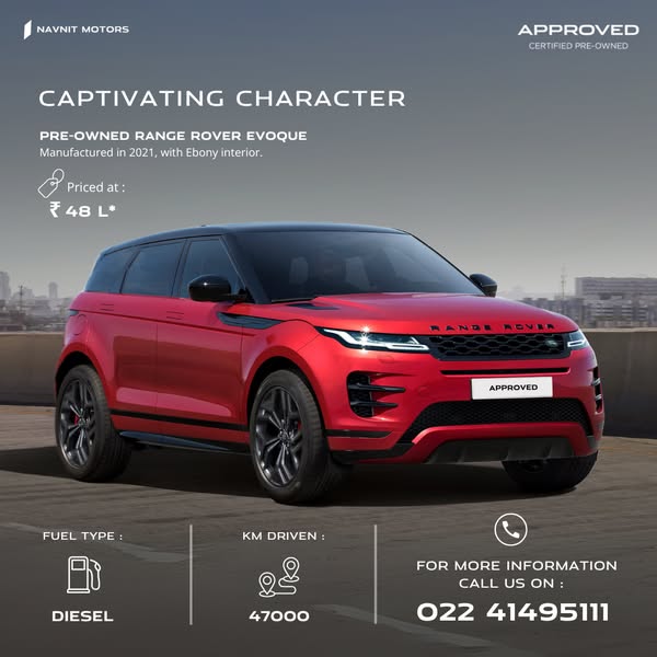 Urban Sophistication Redefined: Step into the Approved Range Rover Evoque, where cutting-edge design meets dynamic performance. Experience a perfect blend of style and innovation that transforms everyday drives into extraordinary journeys.