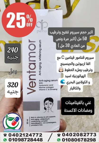 💁🏻💁🏻♀️ ومع #سيروم_ڤنتامور VENTAMOR مش هتحتاري كتير تستخدمي #سيروم_فيتامين_سي ولا #هيالورنيك_اسيد 🤔⁉️
