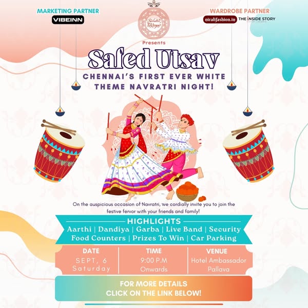 搜索关键词 Navratri festival, cultural event, safed utsav, indian culture, celebration event, festival promotion, traditional festival, event ticket, navratri celebration, event promotion优势 Celebrates Navratri,Special Safed (White) Edition
