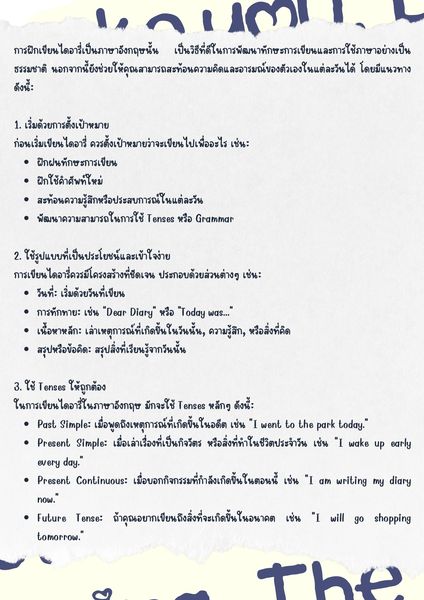 - ฝึกเขียนไดอารี่และบันทึกการเดินทางเป็นภาษาอังกฤษ
