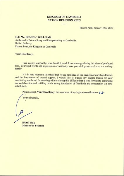 搜索关键词 condolence message, gratitude expression, public announcement, funeral service, cambodia news, diplomat recognition, family bereavement, respect acknowledgement优势 Expresses Gratitude,Public Acknowledgement