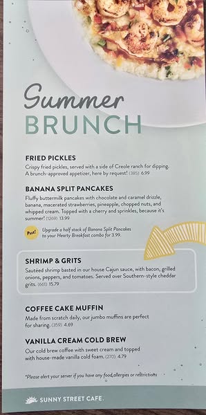 搜索关键词 Sunny Street Cafe, Summer Brunch, Dublin Ohio, Brunch Menu, Catering Service, Food Delivery, Fresh Food, Scratch Made, Coffee Cake Muffin, Shrimp and Grits优势 Scratch-made dishes,New Summer Brunch menu,Delivery available through multiple platforms,Catering service