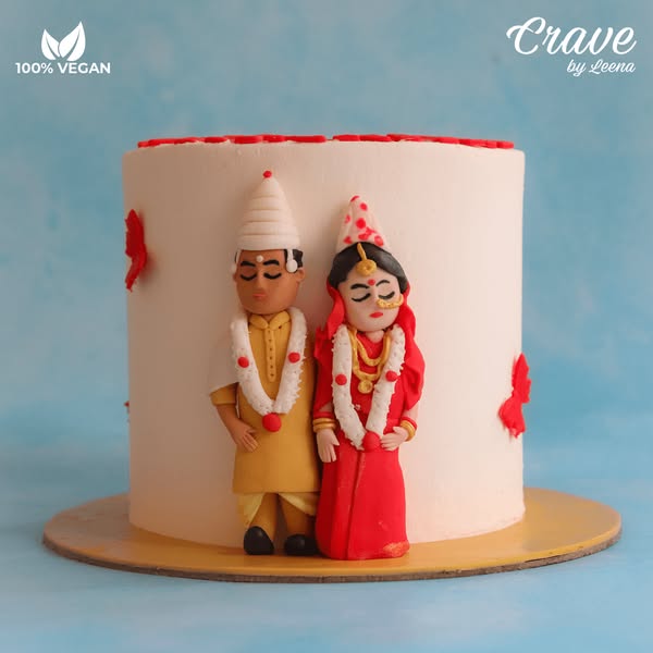 搜索关键词 wedding cake, custom cake, buttercream cake, 24k gold leaf, special occasion, celebration cake, luxury cake, personalized cake, traditional wedding, bespoke cake优势 Visually Appealing,Luxurious Decorations (24k gold leaf),Customizable (traditional attire couple)