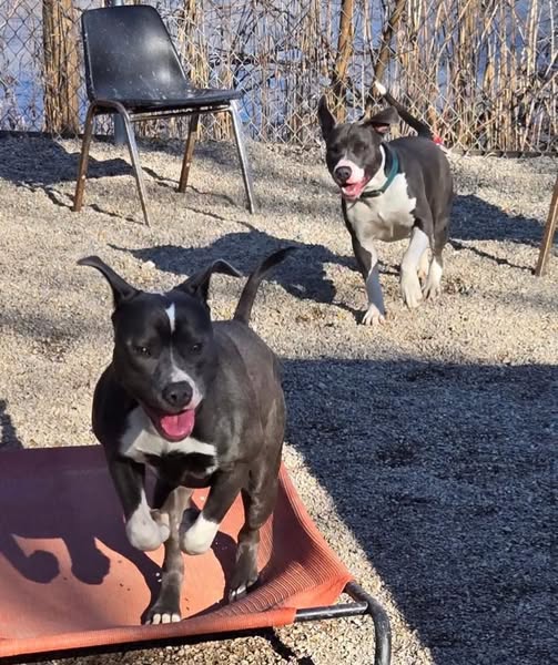 These dogs are truly some of the very SWEETEST dogs we have ever had at Pet Project. They are 9 month old bully mixes - compact low-riding pups like footstool height. lol. Please consider meeting these darling dogs . 🐾💕