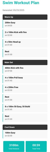 💥 Structured, 60-minute swim workouts designed to build endurance, speed, and consistency — all in one powerful app.