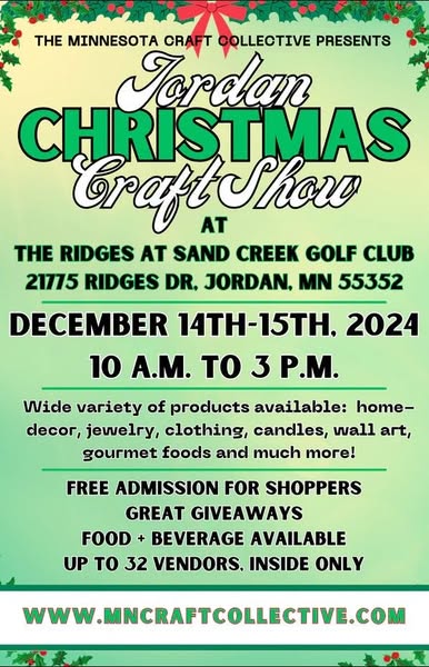 •Minnesota Craft Collective Presents - Jordan Christmas Craft Show at Ridges at Sand Creek - Saturday and Sunday, Dec 14 & 15, 10am - 3pm