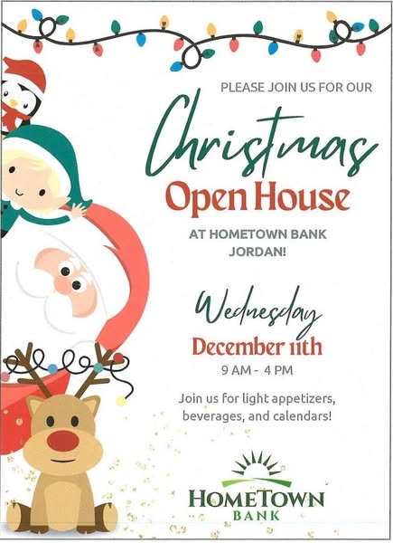 •Hometown Bank - Christmas Open House - Wednesday, Dec 11, 9am-4pm