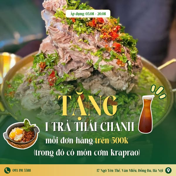 ✅ Tặng ngay 1 BÌNH TRÀ THÁI CHANH với đơn hàng từ 500K (trong đó có món cơm kraprao)