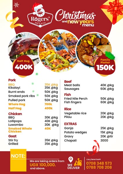 Celebrate this festive season with Roger's BBQ & Bites! Our Christmas and New Year's menu is here to make your celebrations deliciously memorable.