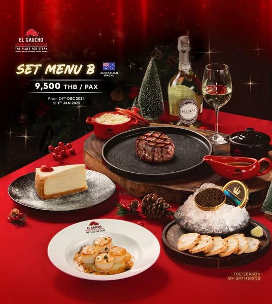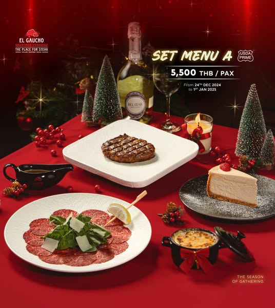 搜索关键词 holiday dining, festive feasts, El Gaucho, steakhouse, Porto de Phuket, Christmas menu, New Year menu, fine dining Thailand, special set menu, luxury dining优势 Exquisite food pairing,Perfectly juicy steak,Option to customize the experience,Festive atmosphere