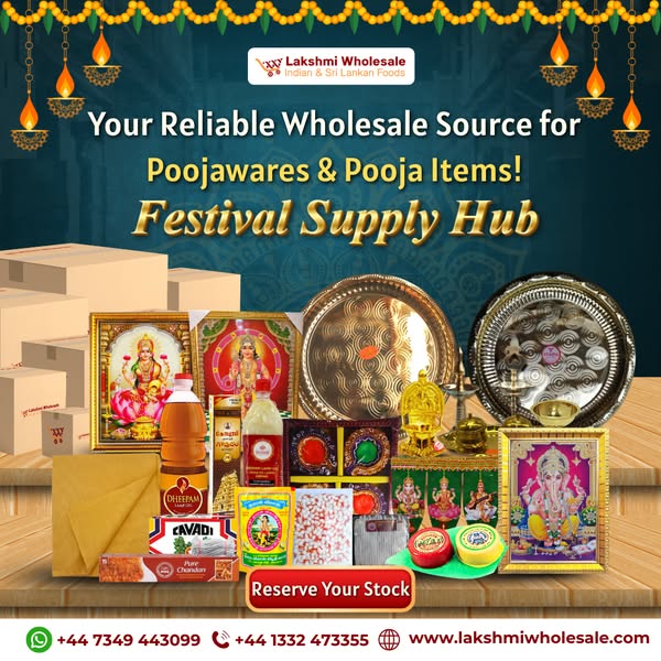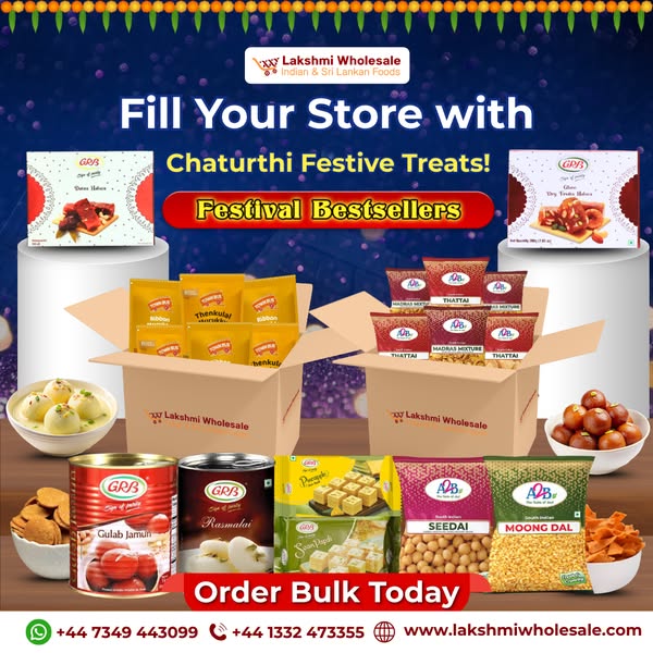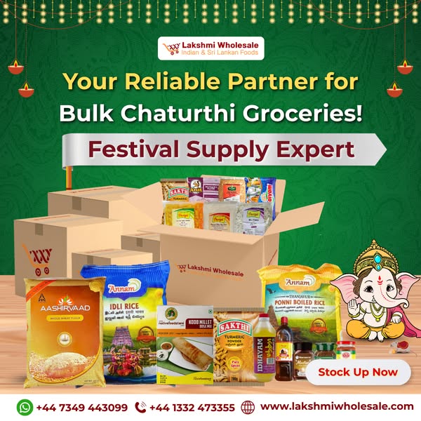 Order farm-fresh fruits and vegetables in bulk for your festive counters. Perfect for modak ingredients wholesale, temple supplies, and retailers stocking up for Ganesha Chaturthi. Lakshmi Wholesale delivers freshness in bulk, hassle-free! #FreshFruitsUK #VegetablesWholesaleUK #ModakIngredientsUK #FarmFreshUK #LakshmiWholesaleUK #GrocerySuppliersUK #IndianShopsUK #UKWholesaleMarket #DerbyWholesale #IndianRetailersUK #UKIndianStores #SupermarketWholesale #IndianGroceryWholesale #UKFruitSuppliers #VegetableWholesaleUK