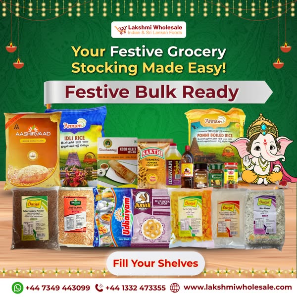 Order farm-fresh fruits and vegetables in bulk for your festive counters. Perfect for modak ingredients wholesale, temple supplies, and retailers stocking up for Ganesha Chaturthi. Lakshmi Wholesale delivers freshness in bulk, hassle-free! #FreshFruitsUK #VegetablesWholesaleUK #ModakIngredientsUK #FarmFreshUK #LakshmiWholesaleUK #GrocerySuppliersUK #IndianShopsUK #UKWholesaleMarket #DerbyWholesale #IndianRetailersUK #UKIndianStores #SupermarketWholesale #IndianGroceryWholesale #UKFruitSuppliers #VegetableWholesaleUK