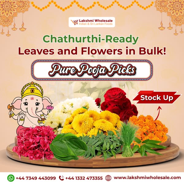 搜索关键词 farm fresh fruits, wholesale vegetables, bulk modak ingredients, ganesha chaturthi supplies, UK grocery suppliers, indian retailers, supermarket wholesale, Lakshmi Wholesale UK, Derby Wholesale, Indian grocery wholesale优势 Farm-fresh quality,Bulk ordering available,Hassle-free delivery,Suitable for festive occasions