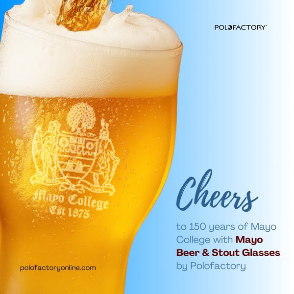 Celebrating a 150 years of Mayo College with a pair Stout Glasses etched with the Mayo Coat of Arms. Limited edition. Delivered in a gift ready Mayo Nostalgia Box.