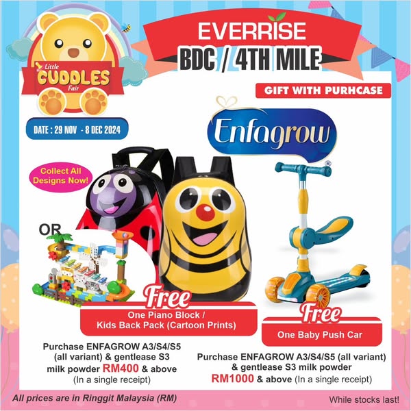 🍼🧸 Join us at the LITTLE CUDDLES FAIR at Everrise BDC & 4th Mile until 08 DEC 2024! 🎉🎁 Enjoy amazing offers and receive exclusive gifts with purchase on your favourite baby essentials, featuring products from quality and trusted brands. 🌟