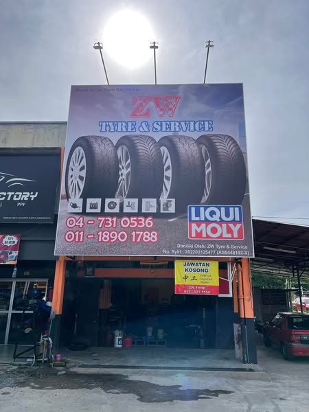 搜索关键词 car service Alor Setar, tyre service Malaysia, engine oil change, brake pad replacement, automotive repair service, car alignment balancing, sport rim absorber, lower arm repair, Friday car service, ZW Tyre Service优势 Open on Fridays,Wide range of services (tyres, engine oil, brakes, etc.),Provides "MANTAP dan BAIK" service (Excellent and Good service),Easy contact via WhatsApp