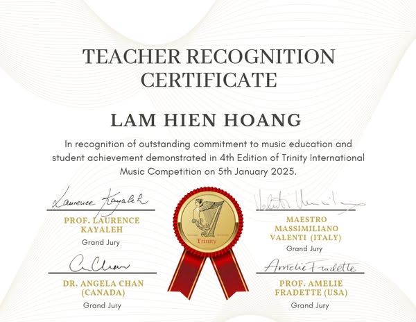 Từng bước chinh phục những đỉnh cao mới trên hành trình nghệ thuật, Nguyễn Hoàng Minh Hương - cựu học viên xuất sắc của Auftdart - Academy of Music, đã tỏa sáng rực rỡ tại cuộc thi giải mang tên Trinity International Music Competition 2025, với thành tích Huy chương vàng đáng tự hào.