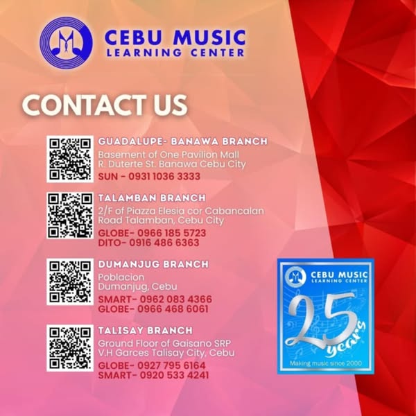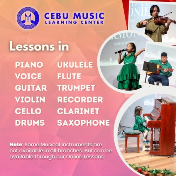搜索关键词 cebu music learning, music lessons, after school lessons, music classes for kids, music education, learn music, online music lessons, face to face lessons, group music lessons, individual music lessons优势 Online and face-to-face lessons,Individual and group classes,Multiple branch locations,Serving the community since 2000