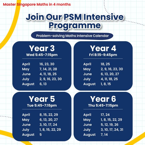📚 Join TeamMathics’ PSM (Problem-Solving Maths) Intensive Programme and unlock your child's full potential in mathematics! With a focus on primary 3-6 levels, this comprehensive programme is tailored to bring out the best problem-solving skills in every student, preparing them to be ready for secondary in future. 🧠✨